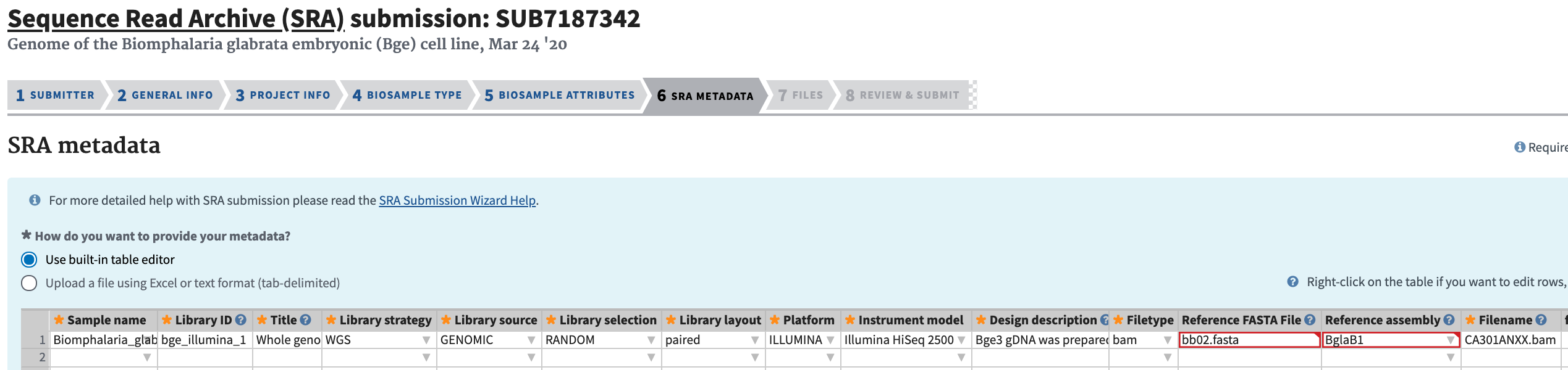 Complete the SRA Metadata section. The filenames should match the preloaded filenames.